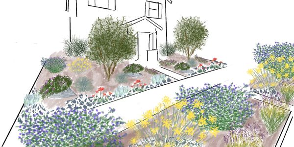 At So Cal Urban Gardens, we work with you to come up with a design plan and plant palette to transform your Southern California landscape. In this scenario, we've created a CA Native landscape that incorporates both stone fruit and citrus trees.