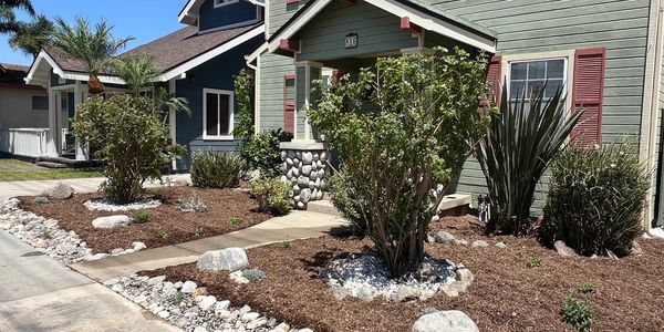 A DG patio, swale, and pathway were created and CA natives planted and covered in a thick layer of mulch. Can't wait to see see how this landscape grows in. We still have some plants to add in Fall and expect to see a massive difference in soil health.